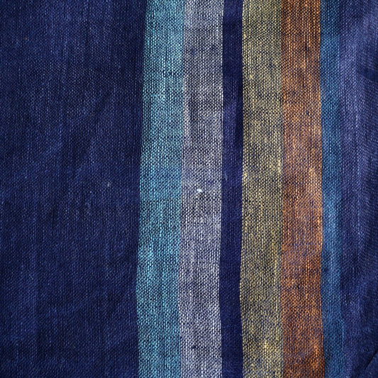 Scarf Linen Blue Gold Stripe Flo Stone
