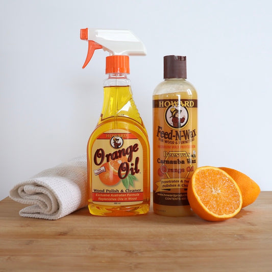 Go for Howard Feed-N-Wax (with orange oil) to replenish oils and waxes and restore that depth. If you prefer a paste wax for a stronger finish, Howard Citrus Shield Paste Wax is a good option.