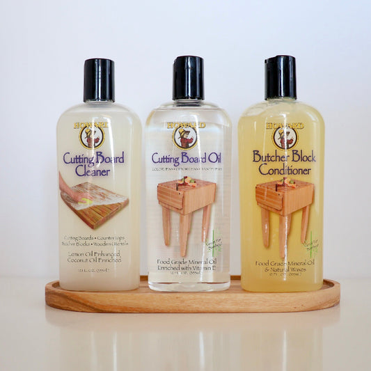 Choose Howard Cutting Board Oil (for moisturizing) or Howard Cutting Board Cleaner (for cleaning & odour removal). Both are designed to be food-safe. We also offer a bundle including the cutting board cleaner, oil and conditioner.