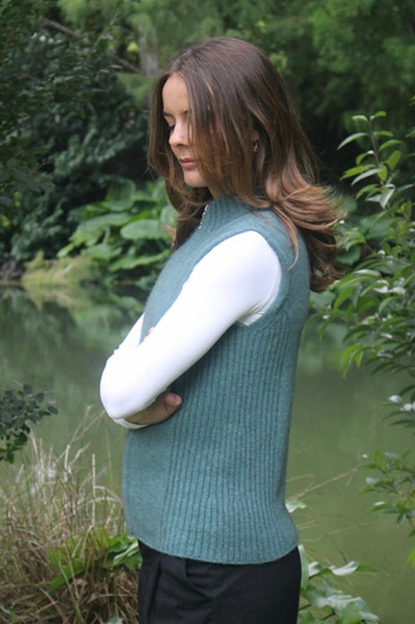 Vest Possum Merino Rib Detail Zip