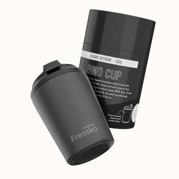 Introducing theĀ CERAMIC Bino Fressko (227ml) reusable takeaway coffee cup with spill proof lock lid.