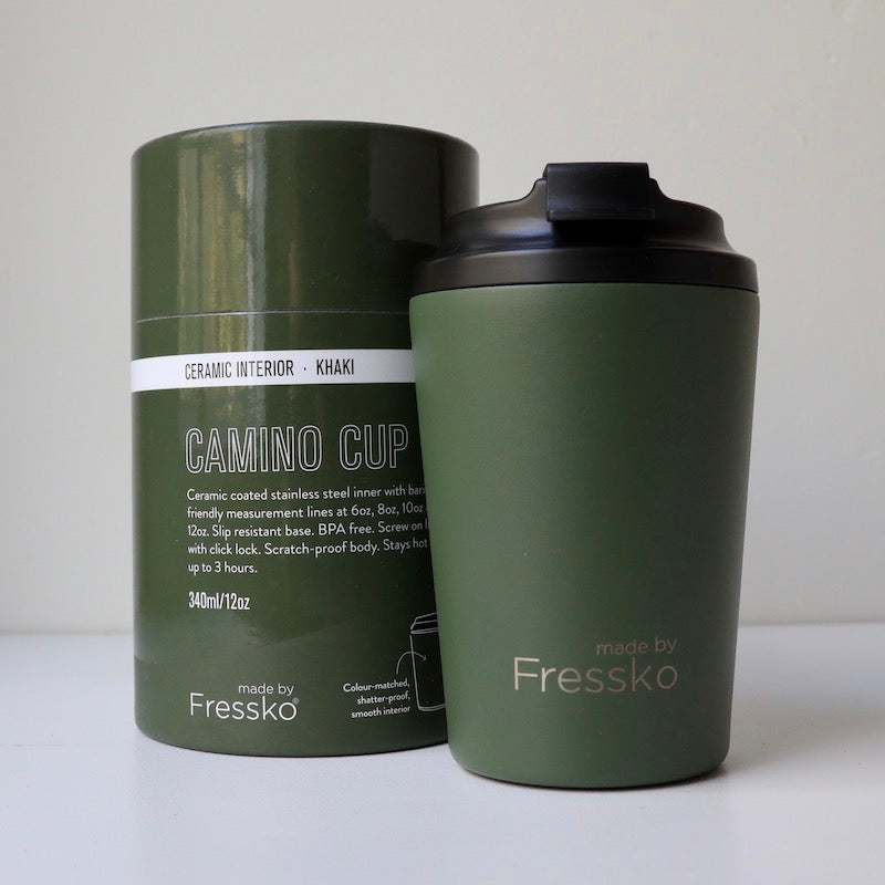 Introducing the CERAMIC Camino (340ml) reusable takeaway coffee cup with spill proof lock lid.