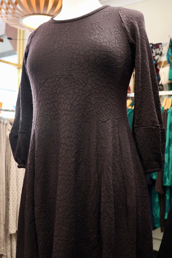 Featuring 3/4 sleeve with cinched sleeve that can be pulled up the arm for comfort and style.  Detailed jacquard/embossed fabric and shapely bodice that falls softly over hips in the classic Valia style.