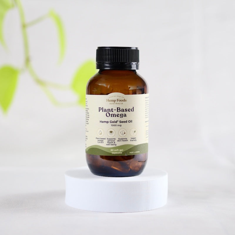 These new plant-Based Omega capsules by Hemp Foods Australia are a natural vegan source of omega-3 and 6 fatty acids. It's made with cold-pressed, 100% organic hemp seed oil. Omega 3 and 6 essential fatty acids may help maintain and support skin health and relieve symptoms of mild eczema. Plant-Based Omega contains natural antioxidants which help decrease free radical damage to body cells. It also assists with relieving inflammation.