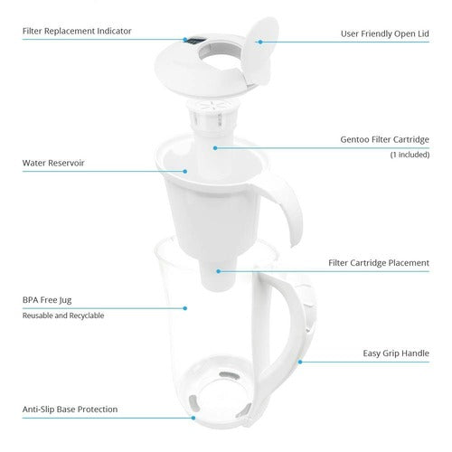 • Do not put Gentoo Plastic Water Filter Jug or filter in freezer or microwave.