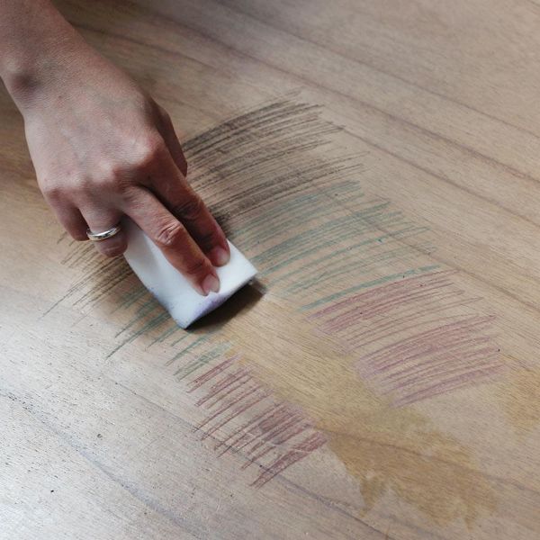 - Simply dampen the sponge with water and gently rub it on the surface you wish to clean.