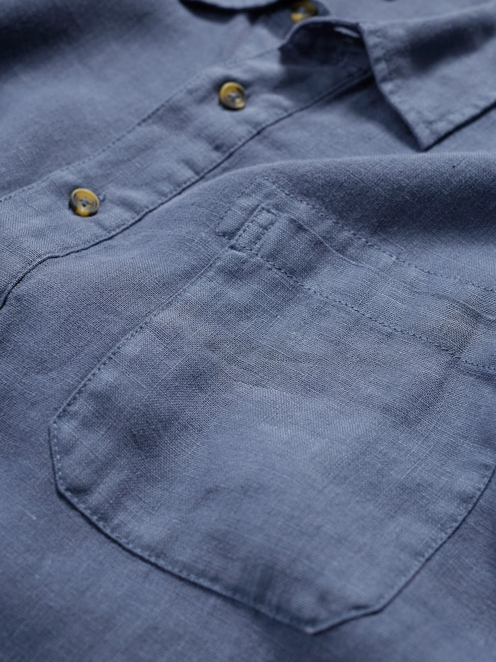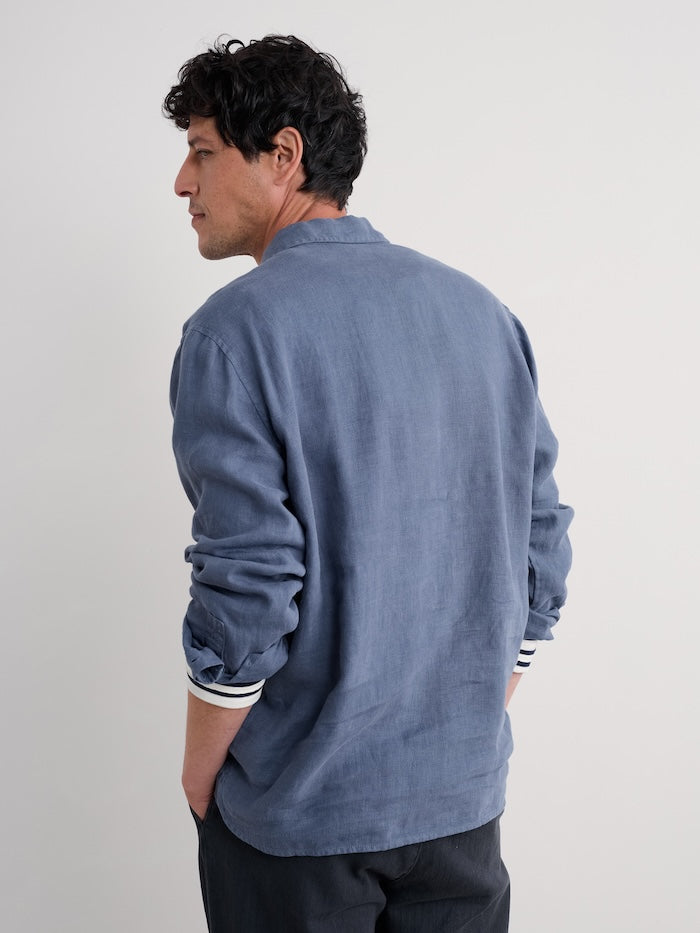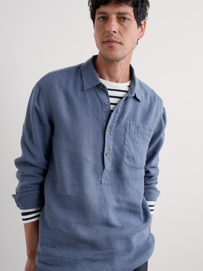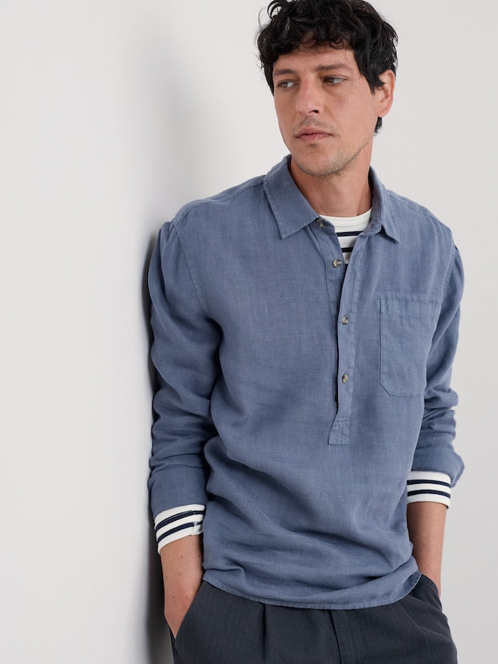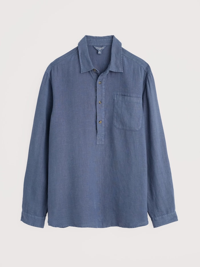 An easy-fitting shirt made from soft, breathable linen. It's garment-dyed to produce a unique sun-faded hue and a 'lived in' look, so it feels like it's already your favourite shirt. The long sleeves are easy to roll up, and it's been given a classic shirt collar with a functioning half placket. It’s finished with a patch pocket on the chest and a curved hem with small side splits.