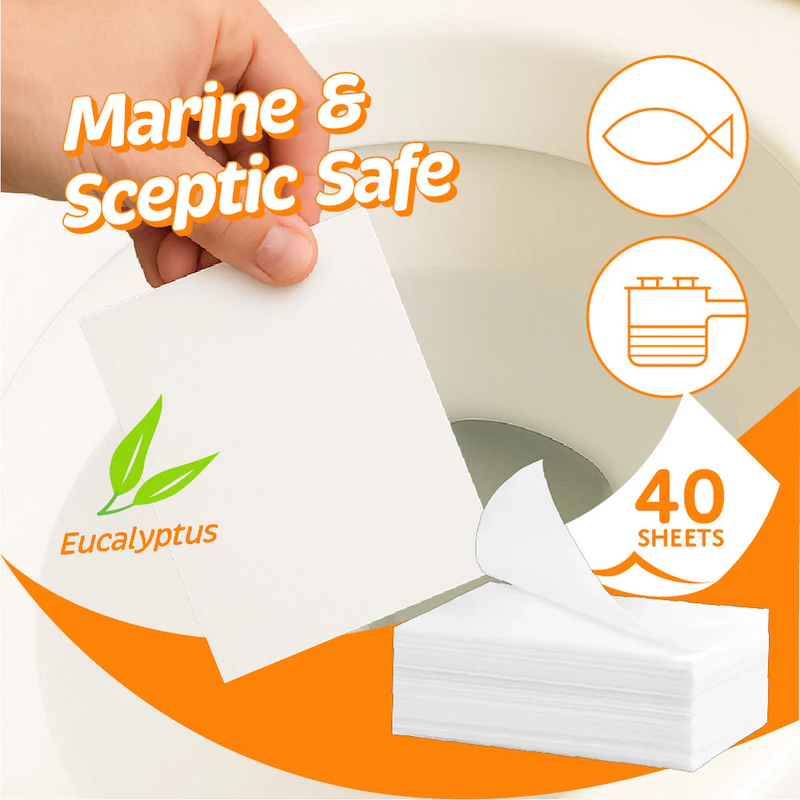 Formulated with plant-based ingredients, these sheets are grey water and septic safe, and free from phosphates, dyes, and bleaches. They are biodegradable and offer a low-waste, plastic-free alternative to traditional toilet cleaners.