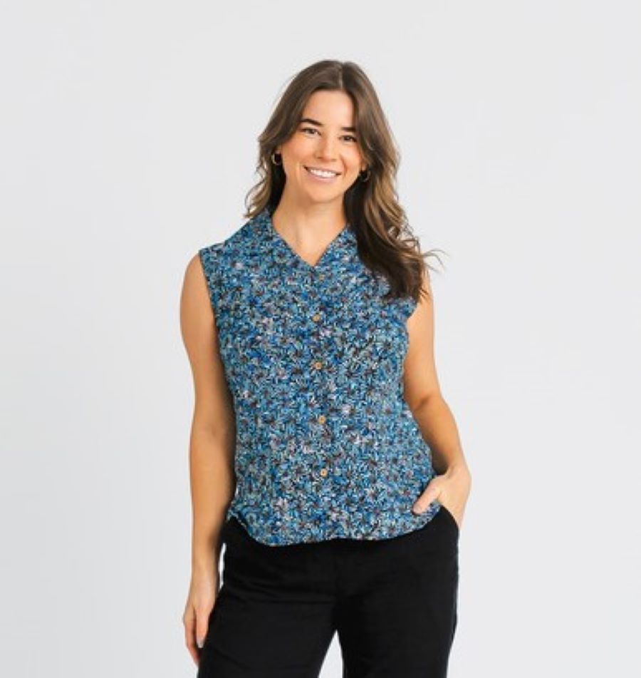 Women's Bamboo Sleeveless Shirt - Blue Bush Banana