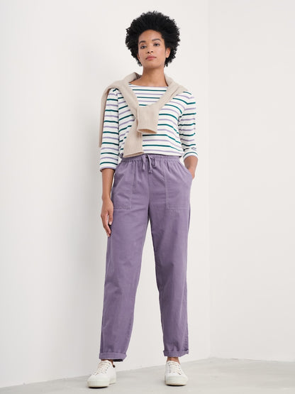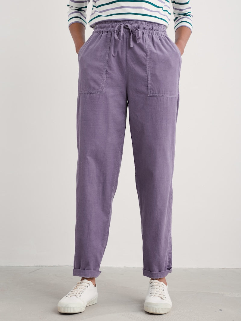 Crafted from soft needlecord, this tapered leg trouser sits on the natural waist. With a drawcord and elastic waistband for comfort, they are the perfect blend of comfort and style. Perfect for running errands or relaxing at home.