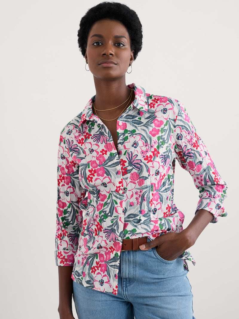 The Larissa Shirt is a year-round favourite. Made from the softest organic cotton with a casual crinkled appearance, the beauty of this shirt is that it doesn’t need ironing – just wash and twist to keep the crinkle. This semi-fitted style is easy-to-style and comfortable, with long sleeves and button loops so you can roll up the cuffs to change your look.